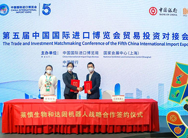 第五届中国国际进口博览会正在如火如荼举行。11月6日,上海莱慎生物科技股份有限公司(以下简称“莱慎生物”)与bb贝博艾弗森机器人股份有限公司(简称“bb贝博艾弗森”)签署生态战略协议,莱慎生物董事长助理兼营销总监薛东英、bb贝博艾弗森销售总监吴新明作为企业代表进行签约,这代表着bb贝博艾弗森云端机器人国家新一代人工智能开放创新平台生态业务在公共卫生领域大步迈进。
